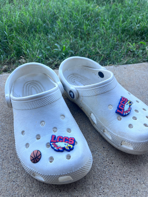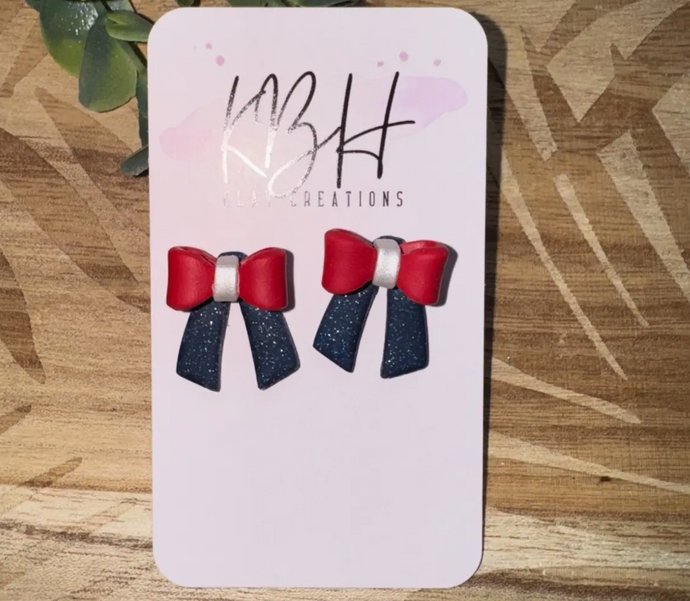 LCCS 2” Script Blue & Red Sparkle Earrings