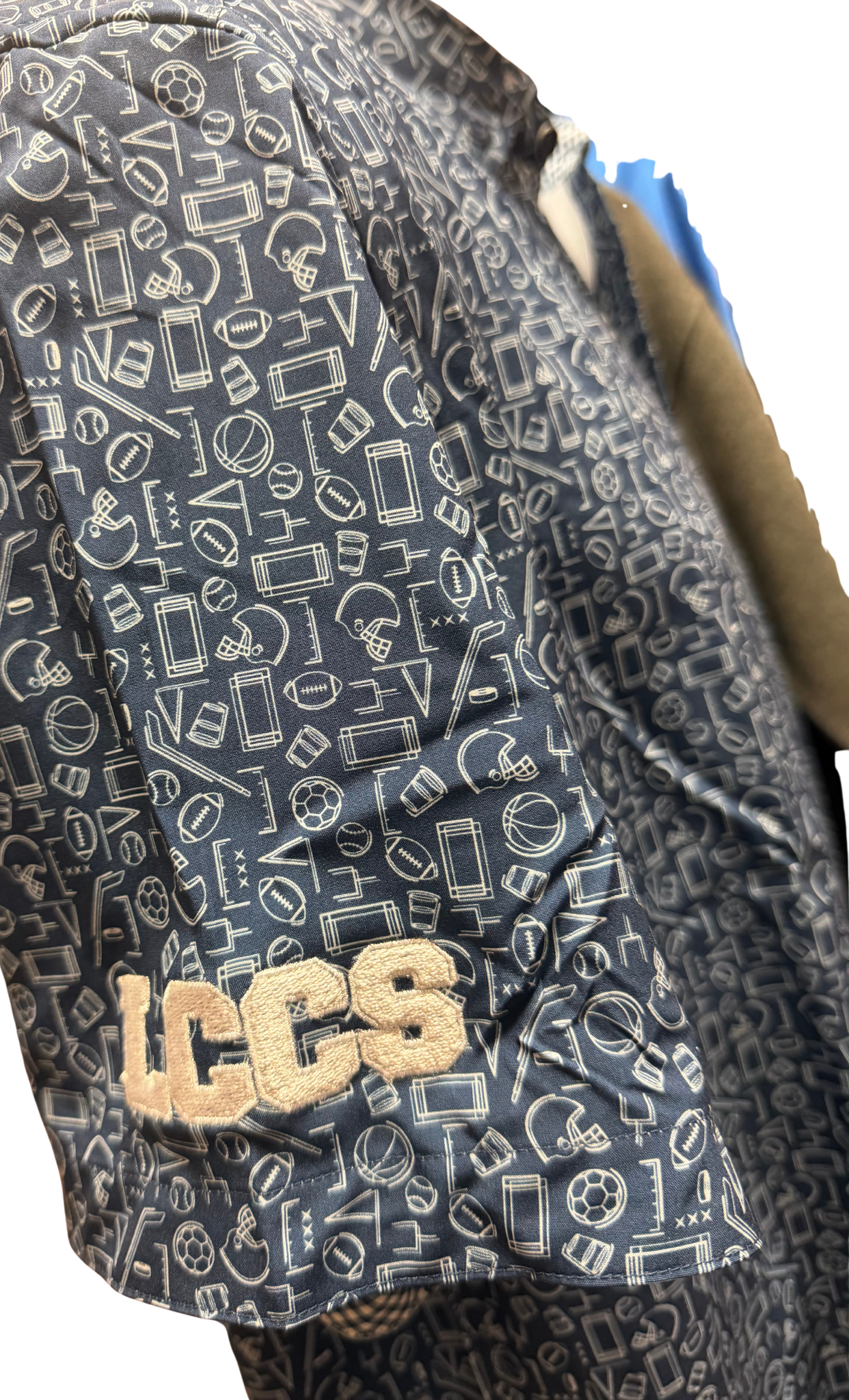Blue All Sports button up shirt with LCCS embroidered on left sleeve